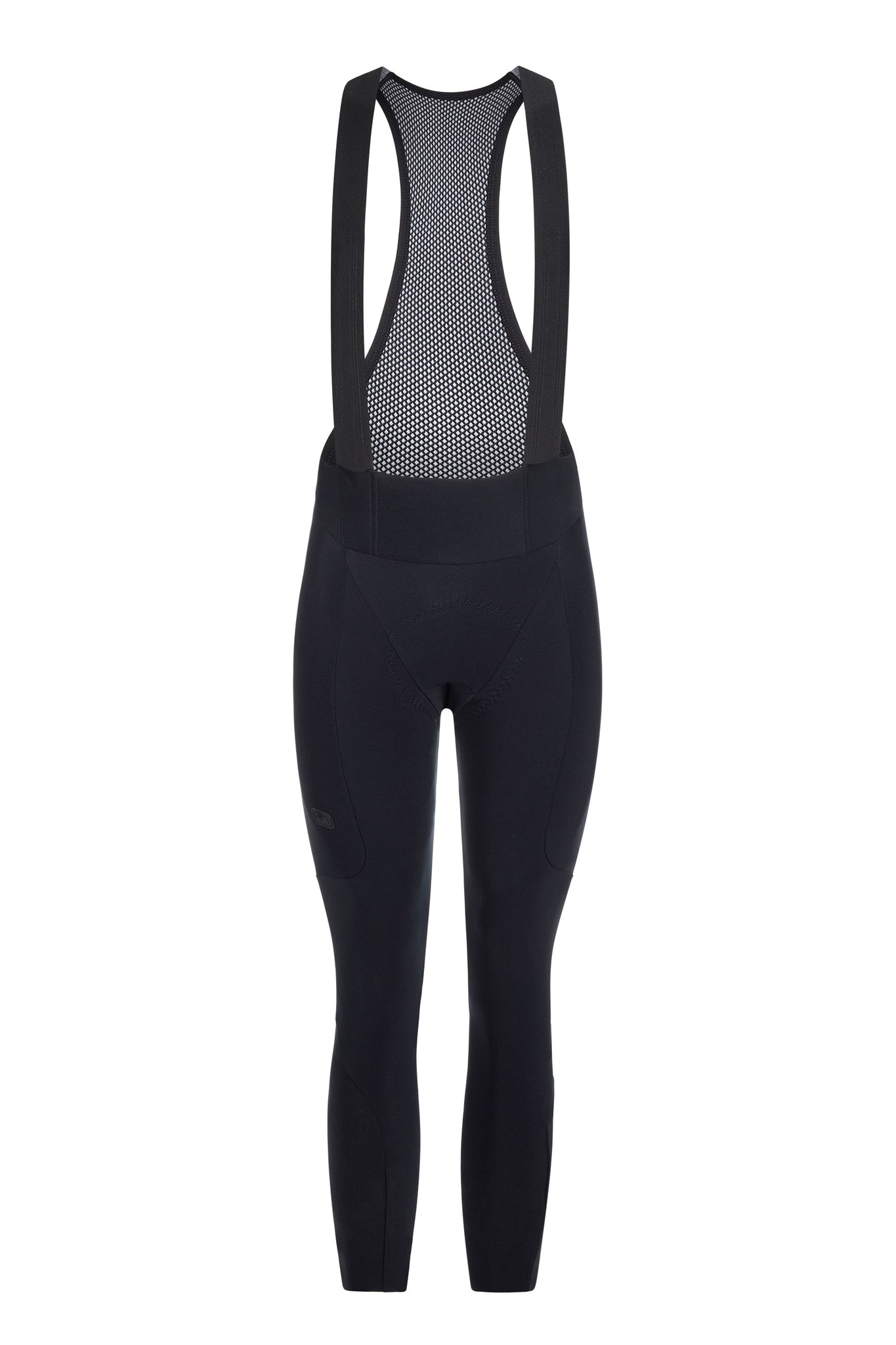 A higher waistline improves both fit and comfort while stretchable, stabilizing bib straps provide core support with an upper mesh back for breathability when layering. Two reflective stripes at the back of the calves and a reflective Giordana logo on the lower right leg keep you visible in low-light conditions. Elastic cuffs at the legs provide stretch without the added bulk of zippers.